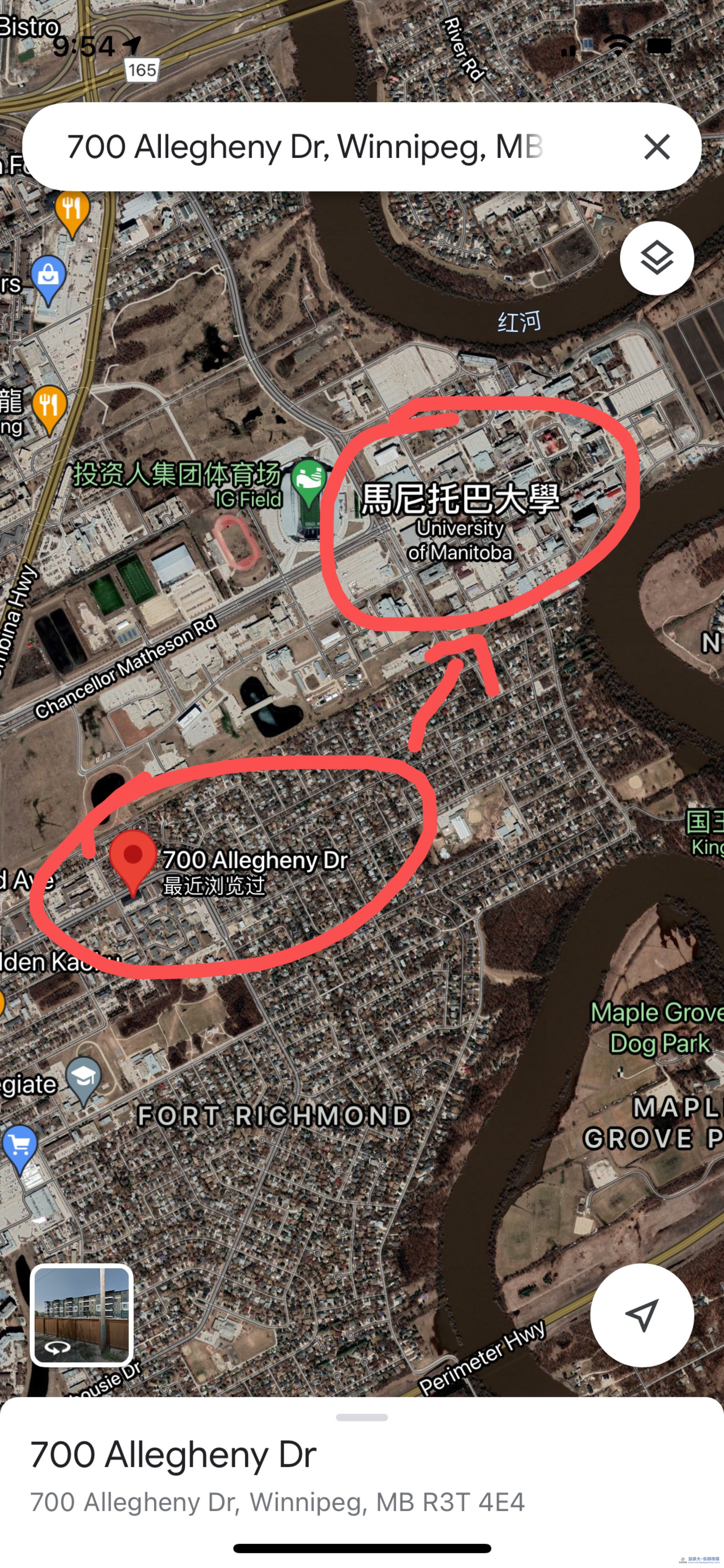 - [ ] 超近曼大,门口有671号公交车直达学校。开车仅需四分钟。出门转弯几分钟就到达Pembina hwy。