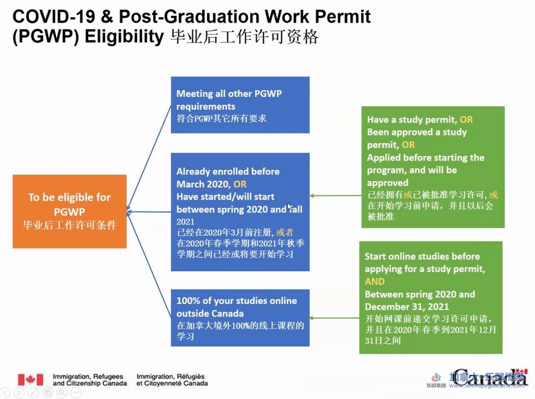 2020年春季开始-2021年12月31日,加拿大境外100%线上课程的学习,也符合申请毕业工签的资格。
